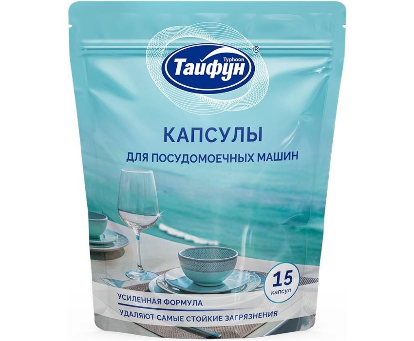 Средство для ППМ ТАЙФУН 182098 Капсулы для посудомоечных машин, 15 шт