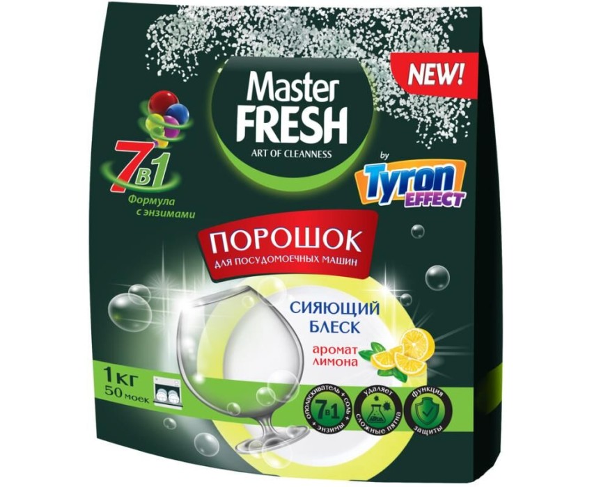 Инновационная формула с энзимами порошка для посудомоечных машин MASTER FRESH специально разработана для домашних посудомоечных машин всех типов. Эффективно очищает любые даже застарелые загрязнения, бережно очищает стеклянную посуду от пятен и помутнений, смягчает воду и защищает внутренние детали от накипи, активный кислород удаляет пятна от чая и кофе, бережно удаляет жир и грязь с нержавеющих покрытий посуды.