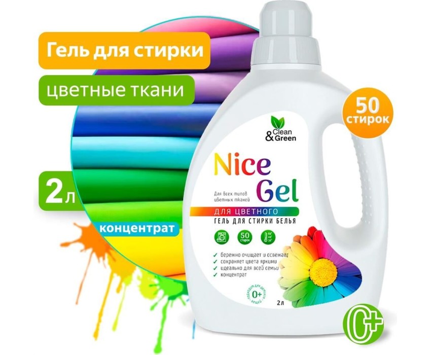 CLEAN&GREEN Гель для стирки "Nice Gel" для цветных тканей (концентрат) 2 л. (ПЭНД) CG8289