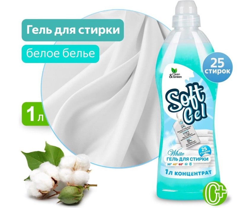 Гель для стирки CLEAN&GREEN CG8297 Soft Gel для белых вещей (концентрат) 1000 мл. (ПЭТ)