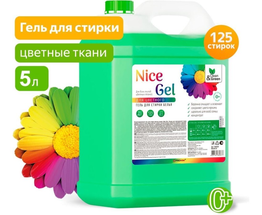 Гель для стирки CLEAN&GREEN CG8287 Nice Gel для цветных тканей (концентрат) 5 л. (ПЭНД)