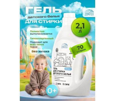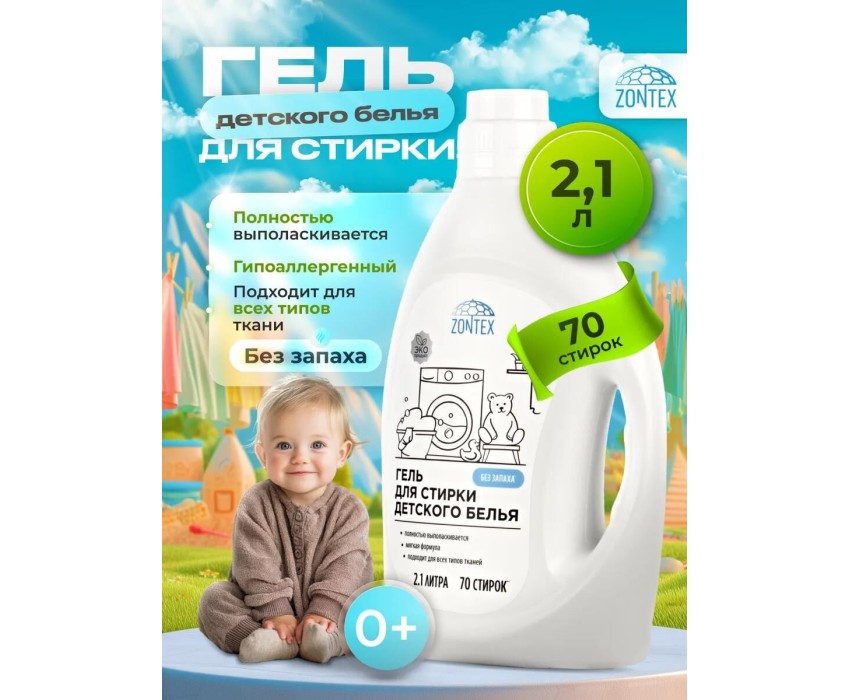 Гель для стирки VORTEX 19022 Zontex Гель для стирки детского белья Без запаха 2,1л