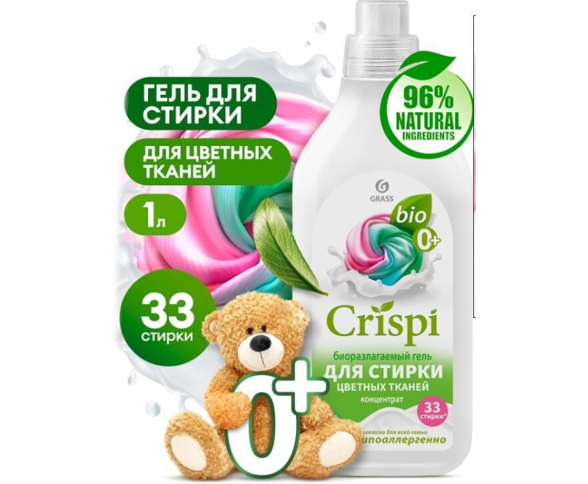 Гель для стирки GRASS 125926 CRISPI Гель для стирки цветного белья концентрат (флакон 1000мл)