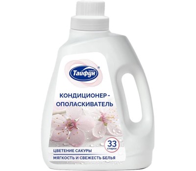 ТАЙФУН Кондиционер для белья, 1 л (Цветение сакуры) предназначен для умягчения тканей в процессе стирки, восстановления волокон и устранения статического электричества. Подходит для всех видов тканей. Придает тканям мягкость и нежный аромат. Снимает статическое электричество, освежает цвета. Подходит для септиков.