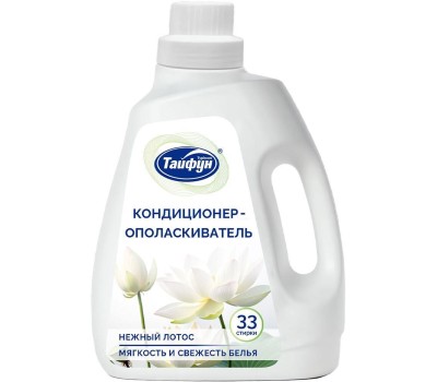 ТАЙФУН Кондиционер для белья, 1 л (Нежный лотос) предназначен для умягчения тканей в процессе стирки, восстановления волокон и устранения статического электричества. Подходит для всех видов тканей. Придает тканям мягкость и нежный аромат. Снимает статическое электричество, освежает цвета. Подходит для септиков.