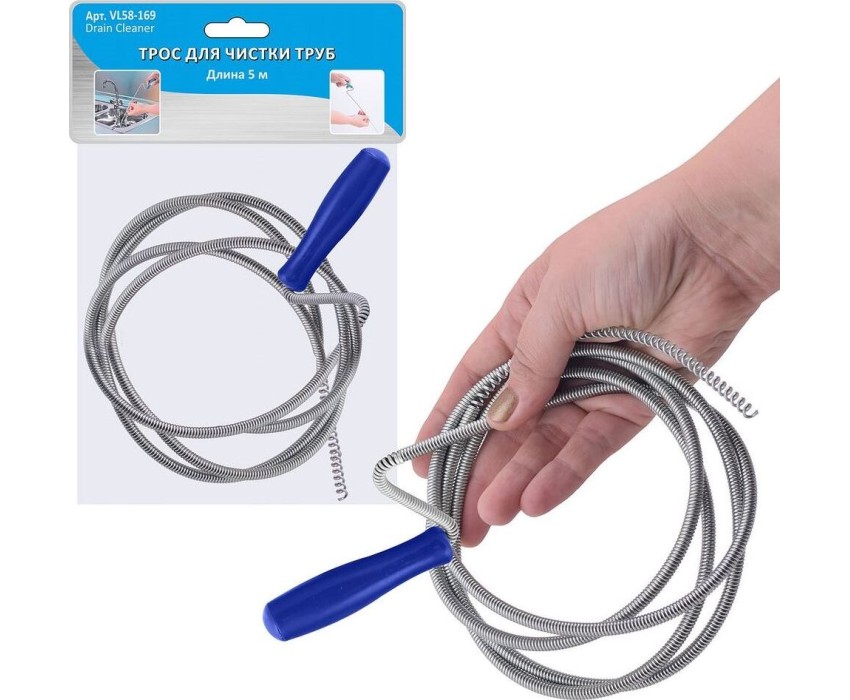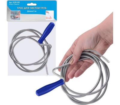 Трос для чистки труб длина 5м VL58-169 Материал: Пружина стальная, пластмасса (РР) Длина 5м, диаметр 5 мм.