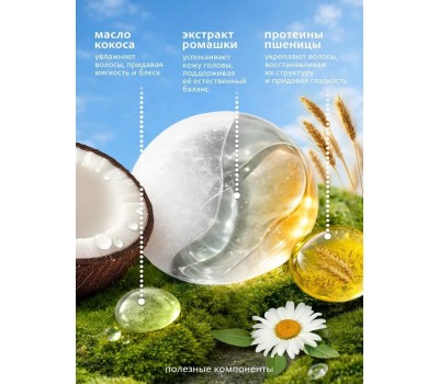 Шампунь-бальзам с маслом кокоса сочетает мягкое очищение и полноценный уход. Подходит для всей семьи, дарит волосам силу, блеск и приятный аромат. Для всей семьи от 3-х лет. Ежедневный уход. для всех типов волос. СПОСОБ ПРИМЕНЕНИЯ: Нанесите на влажные волосы, вспеньте, помассируйте, смойте водой. При необходимости повторить.