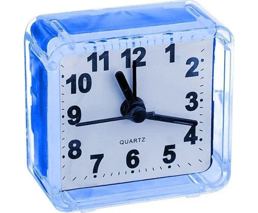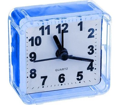 Цвет товара синий Тип часов настольные Механизм часов кварцевые Тип питания от батареек Форма квадратная Цифры арабские Материал корпуса пластик Циферблат светлый Ширина 3 см Высота 6 см