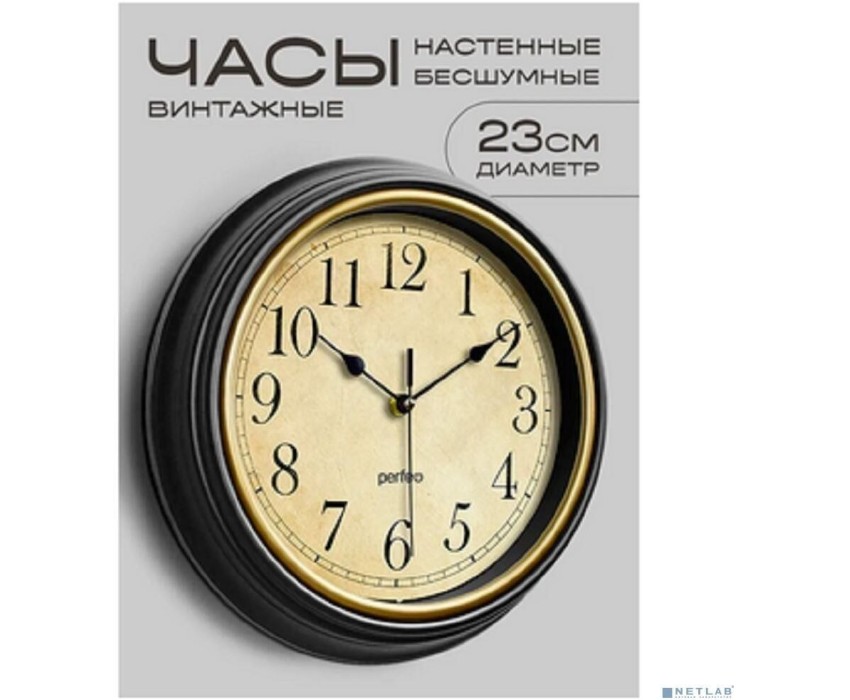 PERFEO Настенные часы "PF-WC-022"(С1) круглые д. 23 см, коричневый корпус / бежевый циферблат
