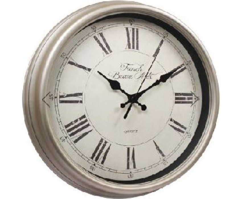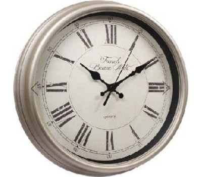 Форма — круг. Материал корпуса — пластик. Цвет корпуса — жемчужно-бежевый. Циферблат — римские цифры. Защита циферблата — силикатное стекло. Вывод времени — стрелочный. Механизм — кварцевый с плавным ходом. Батарейка АА (в комплект не входит). Гарантийный срок — 12 мес.