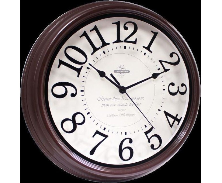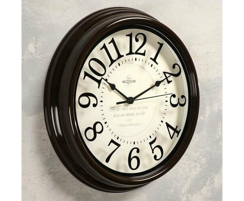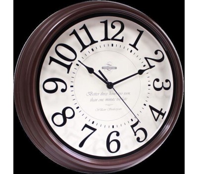 Часы настенные пластиковые, модель 88884872, диаметр 310 мм, стекло минеральное, пластиковый обод, цвет-коричневый. Циферблат на стекле.