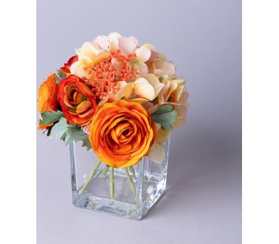 Искусственные цветы LEFARD БУКЕТ ИСКУССТВЕННЫХ ЦВЕТОВ В КВАДРАТНОЙ ВАЗЕ ВЫСОТА= 16СМ (МАЛ=8ШТ./КОР=24ШТ.) 287-549