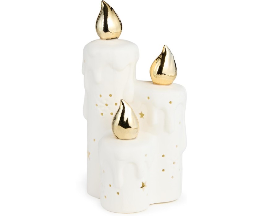 Пусть ваш дом наполнится тёплым, мягким светом — без риска, без дыма, без свечей! Эти изысканные статуэтки в форме свечей, выполненные из белоснежного фарфора с золотыми деталями, — не просто украшения, а настоящие источники уюта и волшебства. Внутри каждой — нежная LED-подсветка, имитирующая мерцающее пламя, создающая атмосферу праздника, романтики или медитации. Что объединяет всю коллекцию: - Высококачественный фарфор — прочный, гладкий, матовый, с благородным блеском; - LED-подсветка с эффектом мерцания — безопасно, экономично, работает от батареек (в комплекте); - Золотые акценты — реалистичные «пламена» и декоративные элементы (звёзды, точки, узоры) — добавляют шика и тепла; Три уникальных дизайна: > «Сказочная свеча» — с рельефными елками и точками, создающими игру света; > «Звёздная свеча» — с вырезами в виде звёзд — идеальна для новогоднего декора; > «Тройная свеча» — композиция из трёх свечей разной высоты — эффектная центральная фигура для стола или полки. Идеально подойдут: ?? Для создания уютной атмосферы в гостиной, спальне или на кухне; ?? В качестве подарка — для любителей уюта, интерьера, медитации или праздников; ?? Для новогоднего, рождественского или весеннего декора — они прекрасны круглый год! Добавьте в свой интерьер мягкий свет без огня — пусть эти фарфоровые свечи становятся вашим источником спокойствия, радости и вдохновения.