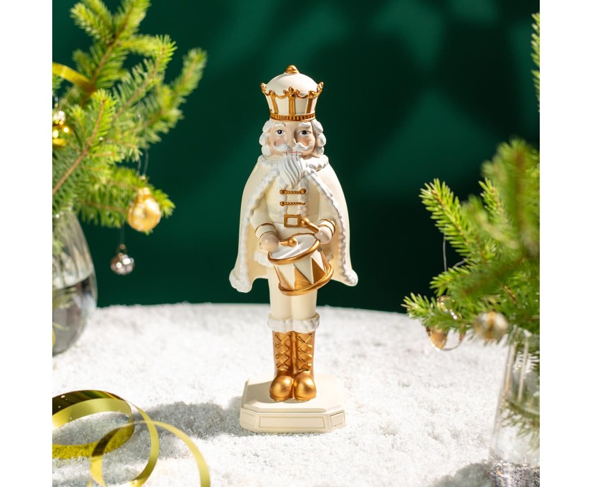 Пусть ваш дом наполнится волшебством — с этим величественным Щелкунчиком из прочного и благородного полистоуна! Он словно только что вышел из знаменитой балетной сказки: в короне, с пышным белым плащом, золотыми сапогами и барабаном в руках — он готов стать центром вашего новогоднего декора или любимым акцентом на камине, полке или рядом с ёлкой. - Материал — полистоун — прочный, лёгкий, устойчивый к повреждениям и идеально подходящий для деталей; - Благородная цветовая гамма — кремово-белый с золотыми акцентами — создаёт ощущение роскоши и праздника; - Детализированный дизайн — корона, борода, плащ с меховой опушкой, барабан с узорами, текстурированные сапоги — всё продумано до мелочей; - Устойчивая основа — стоит уверенно, не требует дополнительной фиксации; - Идеален для интерьера — от классического до современного, особенно в сочетании с другими рождественскими элементами. Идеально подойдёт: ?? Для тех, кто ценит сказочные образы и детские воспоминания; ?? В качестве подарка — для любителей балета, коллекционеров, детей или взрослых, которые верят в чудеса; ?? Для создания атмосферы в гостиной, спальне, на рабочем столе или как центральный элемент новогодней композиции.