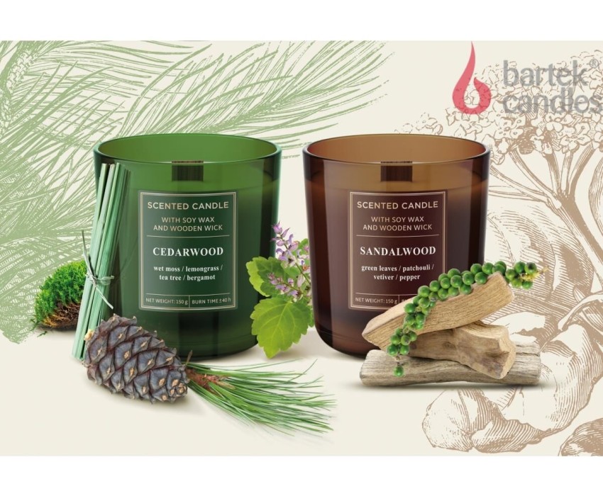 Коллекция Wood candle - это сочетание магии пламени и двух восхитительных древесных ароматов. Пламя от деревянного фитиля создает волшебную атмосферу. Иногда оно искрится и шипит, как поленья в камине.КЕДР Сладкий, теплый, древесный аромат. В ароматерапии описывается как успокаивающий и помогающий прояснить сознание. Чрезвычайно изысканно сочетается с ароматическими нотами бергамота, лемонграсса и чайного дерева, которые снимают напряжение. Между основными нотами мы заключили непостоянство запаха влажного мха. Идеально подходит, когда хочется расслабиться...Группа ароматов: теплые, древесные Композиция аромата: верхние ноты: бергамот, лемонграсс ноты сердца: влажный мох, зеленые листья базовые ноты: кедр. САНДАЛОВОЕ ДЕРЕВО Таинственный, древесный аромат ладана, известный как афродизиак. Интенсивный, возбуждающий чувства. В нашей изысканной композиции он сочетается со свежестью зеленых листьев и едва уловимыми ароматами пачули и ветивера. Мы дополнили все это щепоткой зеленого перца. Если вы хотите влюбиться...Группа ароматов: древесно-ладанные, теплые Композиция аромата: верхние ноты: свежие листья, пачули ноты сердца: мускус, влажная вода база: сандаловое дерево