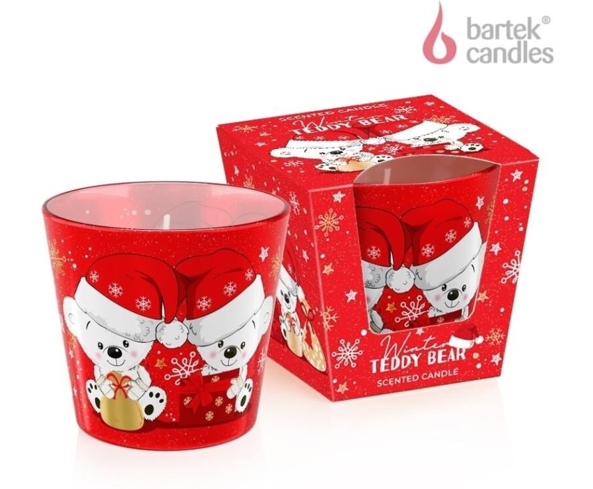 Свеча BARTEK Зимний Плюшевый мишка (Winter Teddy Bear) 115гр в стакане