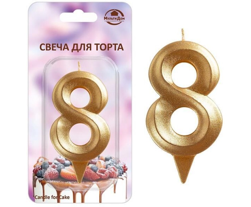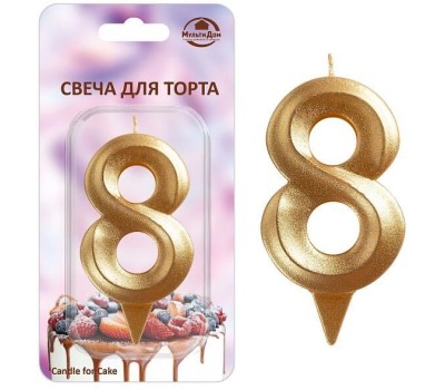 MULTIDOM Свеча для торта "Грань" цифра 8 (золото), 8,7 х 4,3х1,2 см. МС5-18