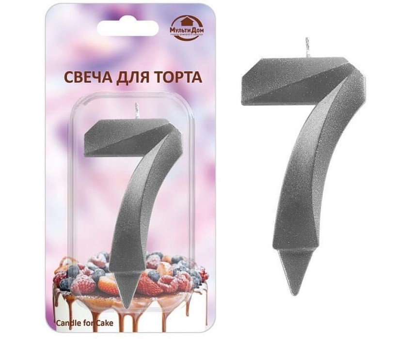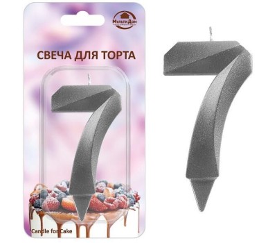 MULTIDOM Свеча для торта "Грань" цифра 7 (хром), 8,7х4,3х1,2 см. МС5-27