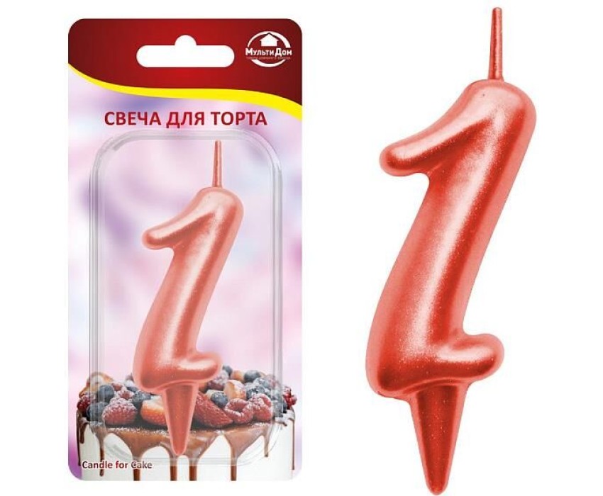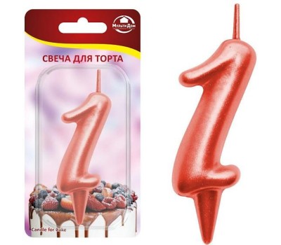 MULTIDOM Свеча для торта "Овал" цифра 1 (красный), 8х4х1,2 см. МС5-31
