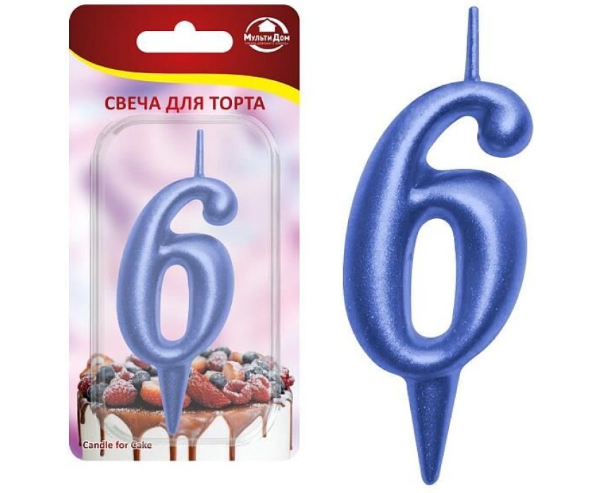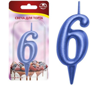 MULTIDOM Свеча для торта "Овал" цифра 6 (синий), 8х4х1,2 см. МС5-46