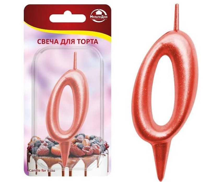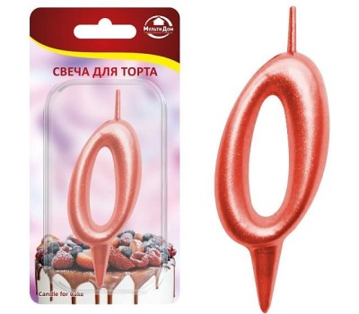 MULTIDOM Свеча для торта "Овал" цифра 0 (красный), 8х4х1,2 см. МС5-30
