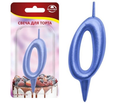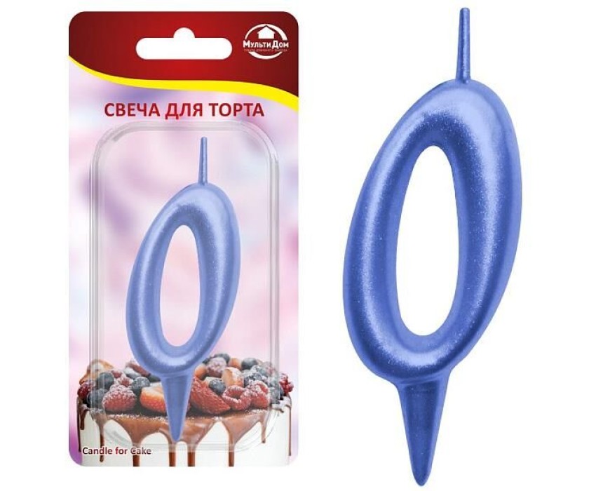 MULTIDOM Свеча для торта "Овал" цифра 0 (синий), 8х4х1,2 см. МС5-40