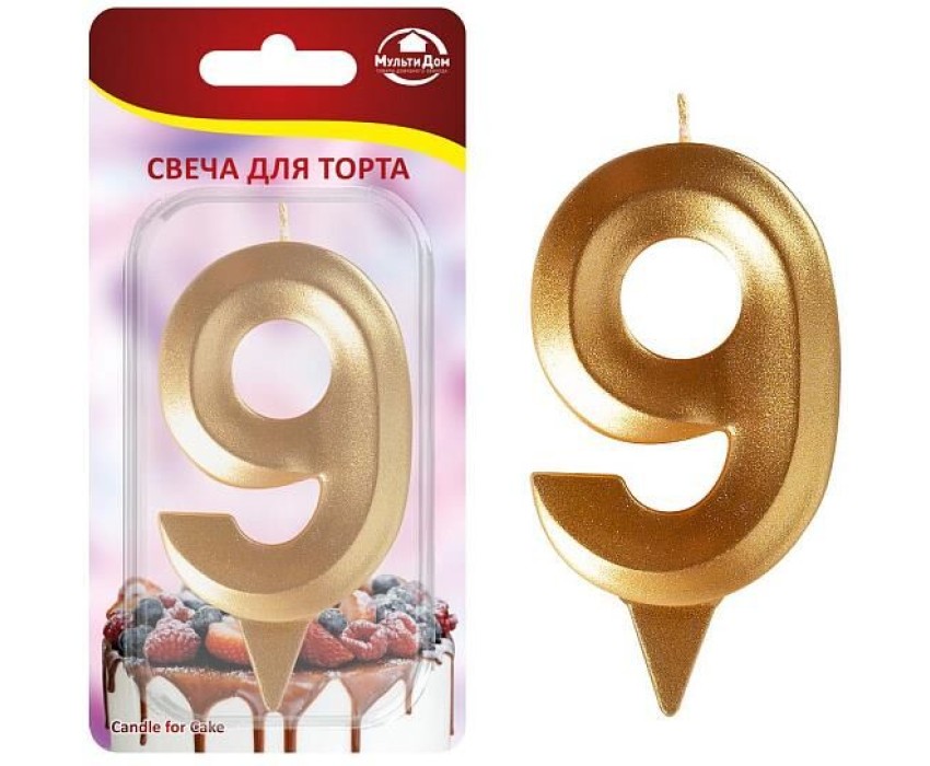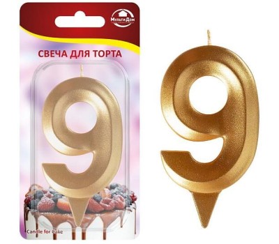 MULTIDOM Свеча для торта "Грань" цифра 9 (золото), 8,7х4,3х1,2 см. МС5-19