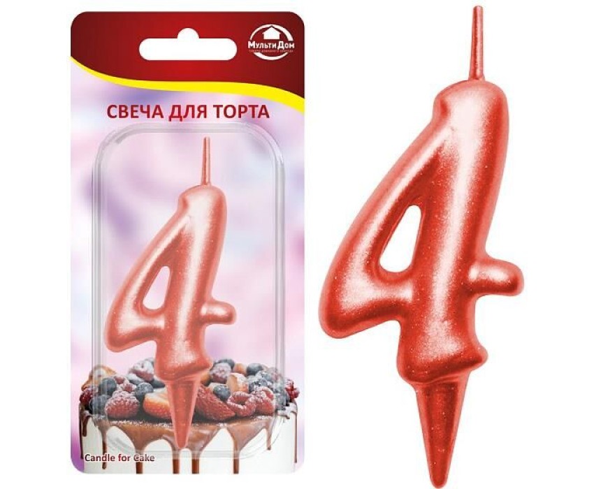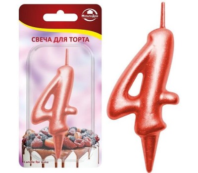 MULTIDOM Свеча для торта "Овал" цифра 4 (красный), 8х4х1,2 см. МС5-34