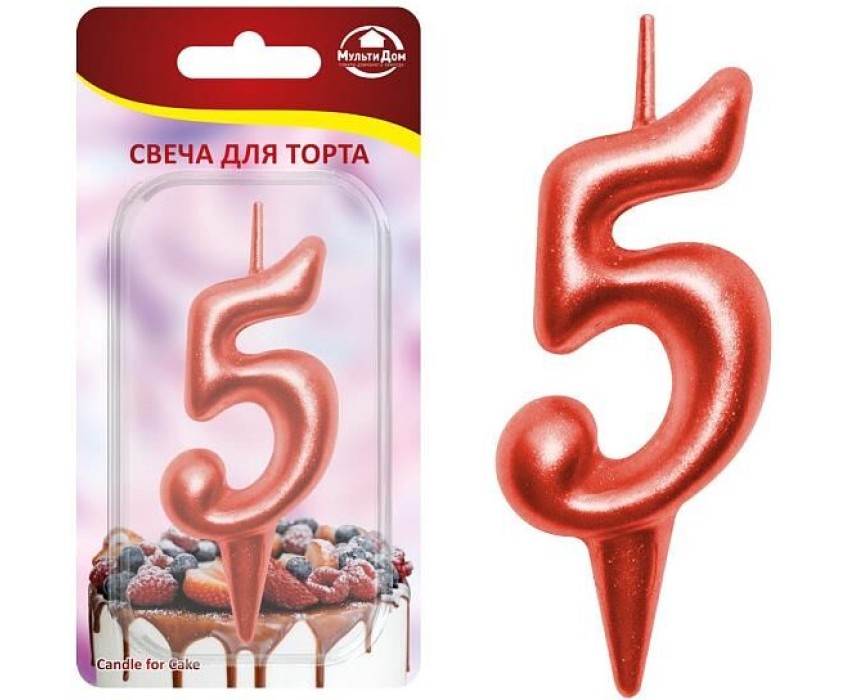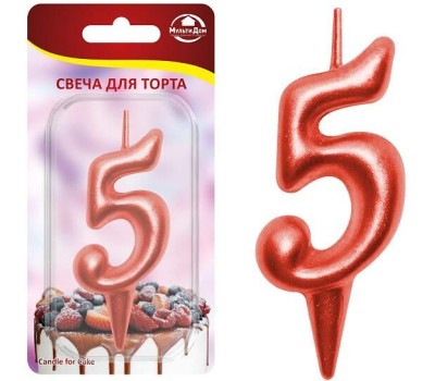 MULTIDOM Свеча для торта "Овал" цифра 5 (красный), 8х4х1,2 см. МС5-35