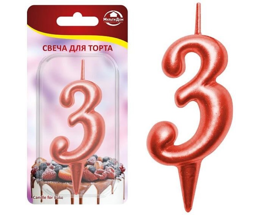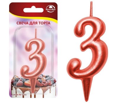 MULTIDOM Свеча для торта "Овал" цифра 3 (красный), 8х4х1,2 см. МС5-33