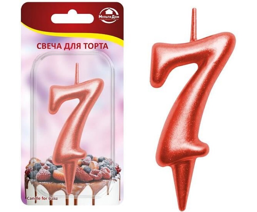 MULTIDOM Свеча для торта "Овал" цифра 7 (красный), 8х4х1,2 см. МС5-37