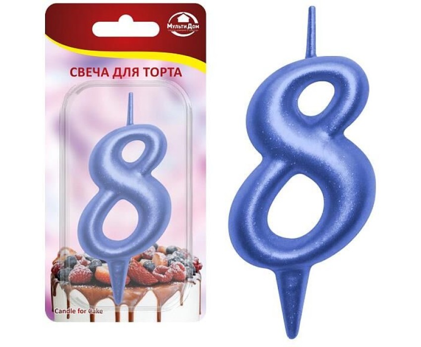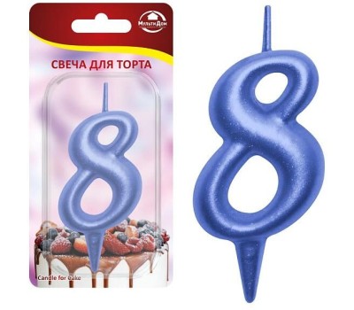 MULTIDOM Свеча для торта "Овал" цифра 8 (синий), 8х4х1,2 см. МС5-48