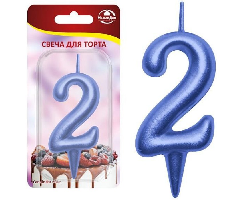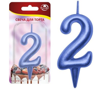 MULTIDOM Свеча для торта "Овал" цифра 2 (синий), 8х4х1,2 см. МС5-42