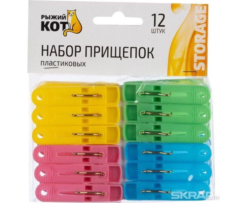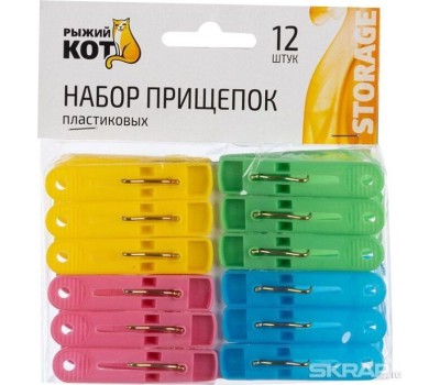 Набор прищепок РЫЖИЙ КОТ Набор прищепок пластиковых, 12 шт (311374)