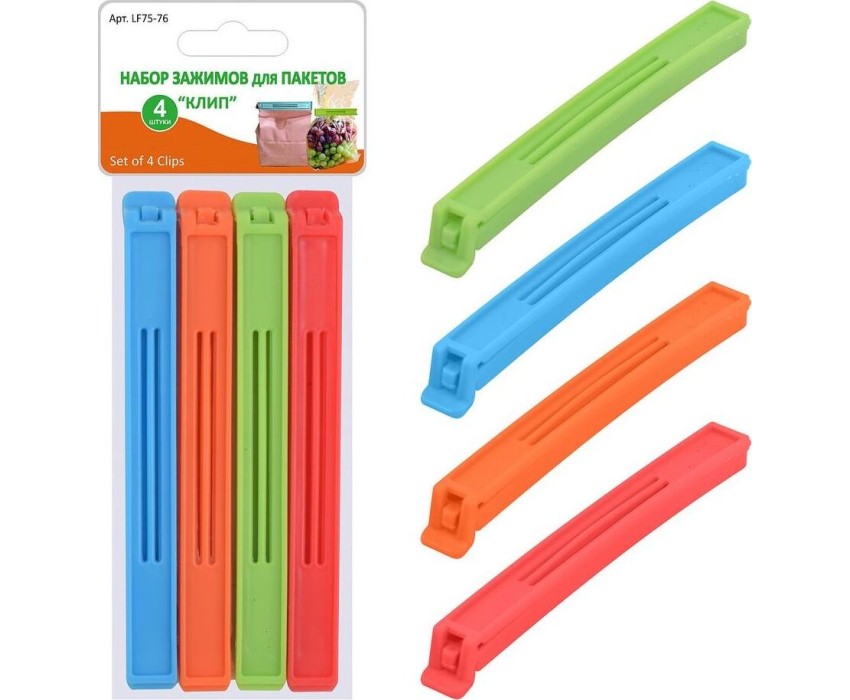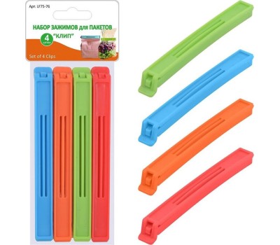 Н-р зажимов д/пакетов "Клип" 4 шт дл 14 см LF75-76 Материал: Пластмасса
