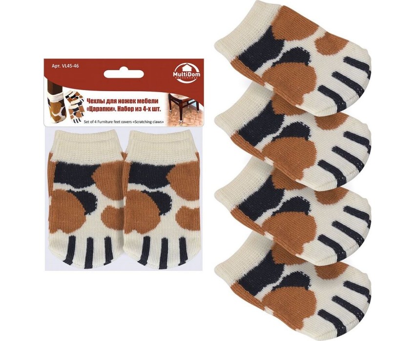Чехлы для ножек мебели "Царапки". Набор из 4-х шт. Размер 9х5,5см. MULTIDOM Чехлы для ножек мебели "Царапки". Набор из 4-х шт. Размер 9х5,5см. VL45-46