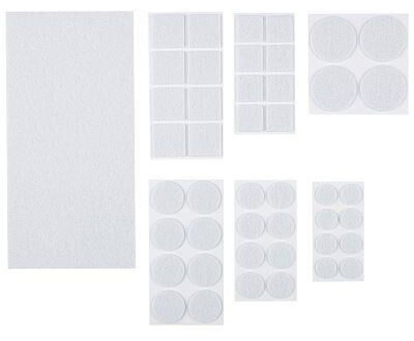 Набор: 45шт диаметр 16мм х 8шт, диаметр 20мм х 8шт, диаметр 25мм х 8шт, диаметр 35мм х 4шт, квадрат 20х20мм х 8шт, квадрат 25х25м х 8шт, 200х100ммх1шт Толщина: 2 мм Материал: 100% полиэстер Цвет: белый Упаковка: пакет+хеддер Включает семь типоразмеров из