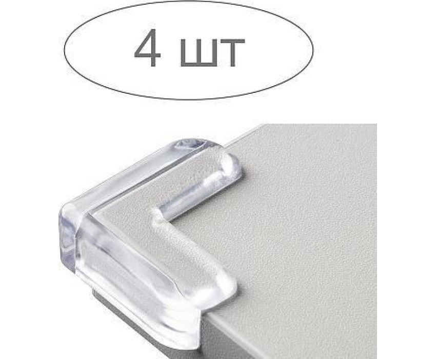 Накладки защитные на углы прозрачные В упаковке: 4 шт крепление - двухсторонний скотч, есть в комплекте Материал: пластмасса Упаковка: блистер Изделие легко крепится к углам, благодаря липкой ленте. Позволяют избежать ушибов об углы и избежать травм. Созд