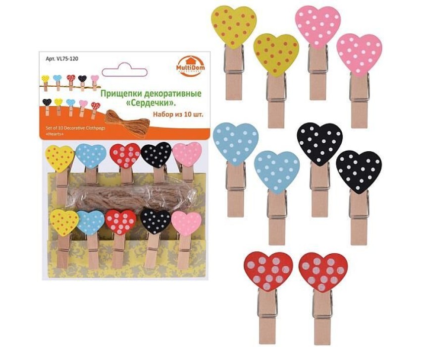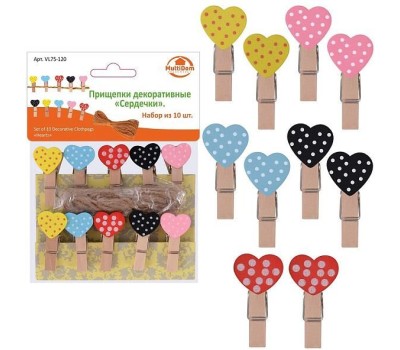 MULTIDOM Прищепки декоративные "Сердечки". Набор из 10 шт. Общая длина 3,5см. VL75-120