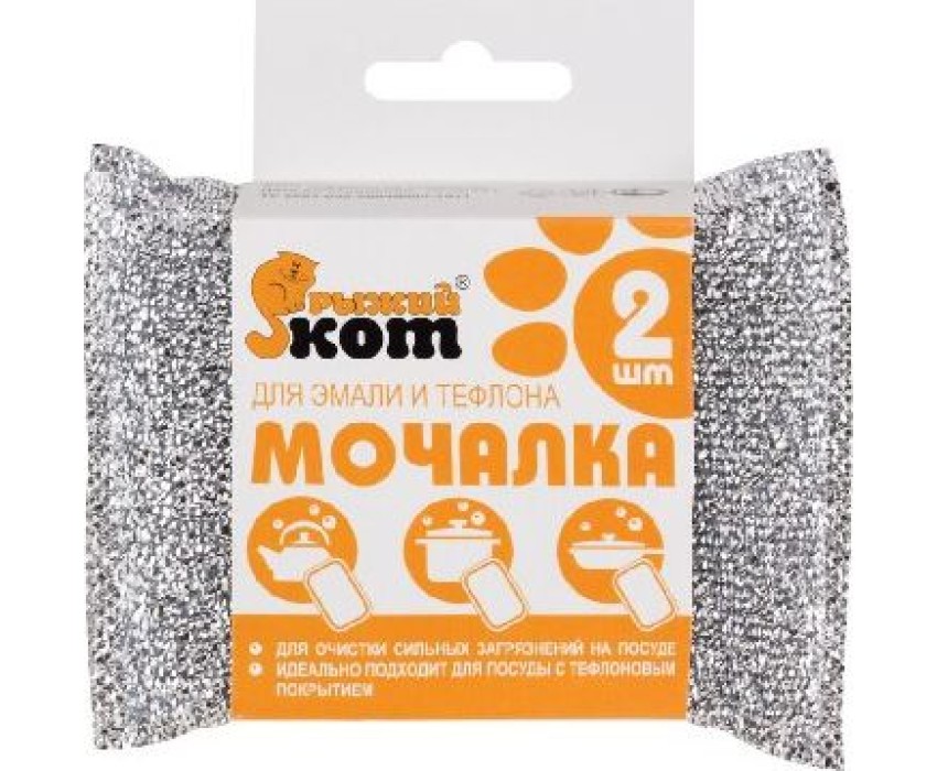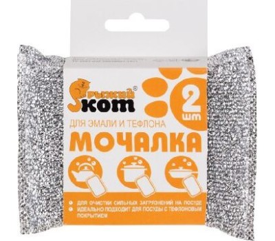 Хоз. товары РЫЖИЙ КОТ мочалка для эмали и тефлона (2шт/уп) (310287)(50)