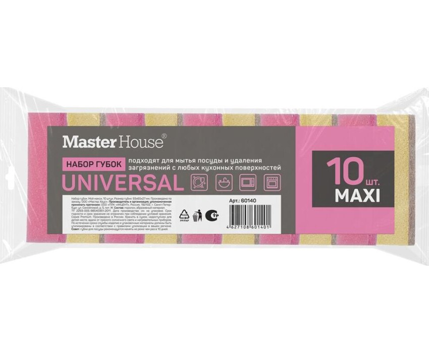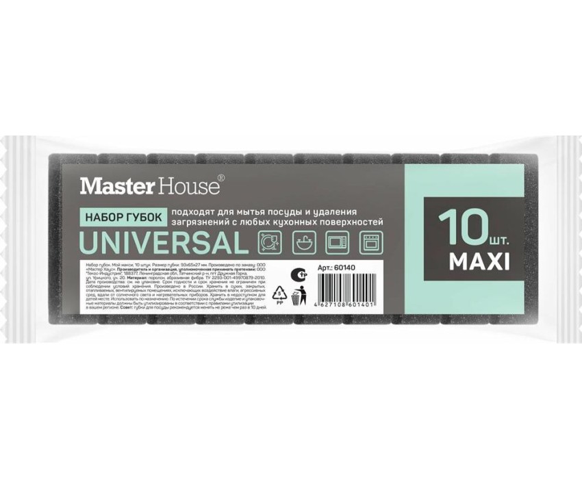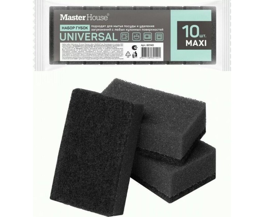 Губки для посуды MASTER HOUSE МОЙ 10 штук 93*65*27 (МАКСИ) 60140