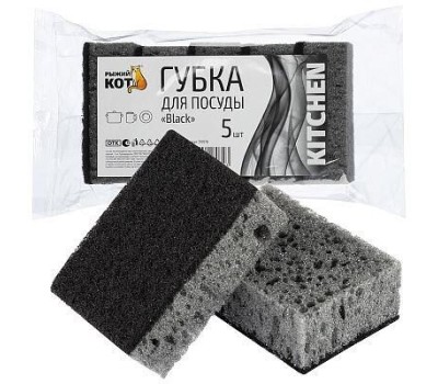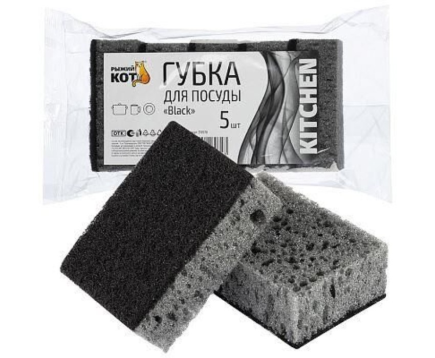 РЫЖИЙ КОТ Губка д/посуды Black (5шт) (98*67*35мм) (310578)