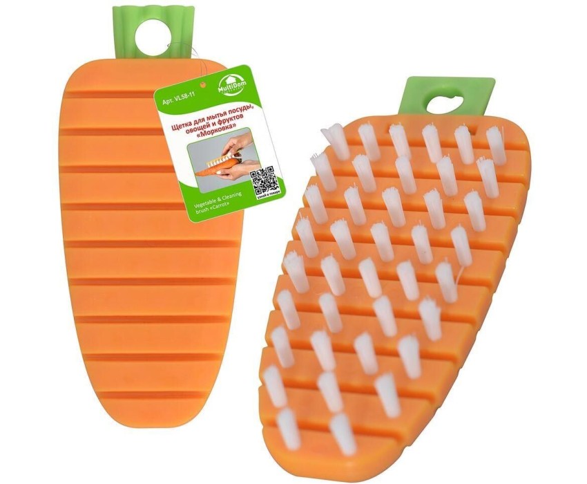 Удобная щетка предназначена для мытья посуды, овощей и фруктов. Станет вашим незаменимым помощником в борьбе за чистоту С помощью этой щетки вы легко удалите загрязнения с овощей и фруктов, а также очистите и вымоете любую посуду. Для удобства хранения на крючке, есть отверстие в верхней части щетки. Перед первым использованием и после каждого применения, промыть в теплой воде, можно с жидким моющим средством, сполоснуть под проточной водой и просушить. Изготовлено из пластмассы (полипропилен). Размер: 13х6х1,5 см.