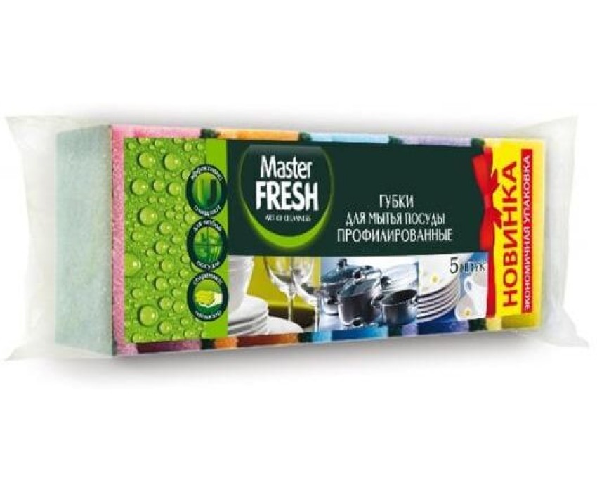 Губки для посуды MASTER FRESH С0005974 Master FRESH Губки для мытья посуды профилированные 5 шт