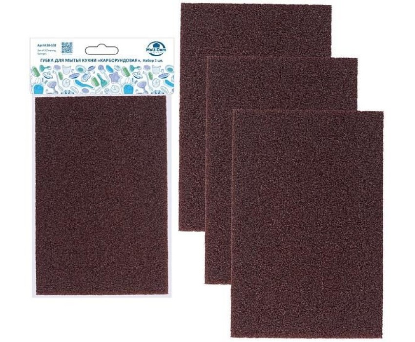 MULTIDOM Губка для мытья кухни "Карборундовая". Набор 3шт. Размер 9х13,5х0,5 см. VL58-102