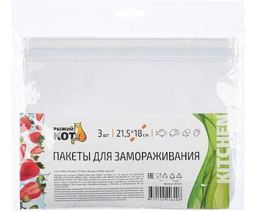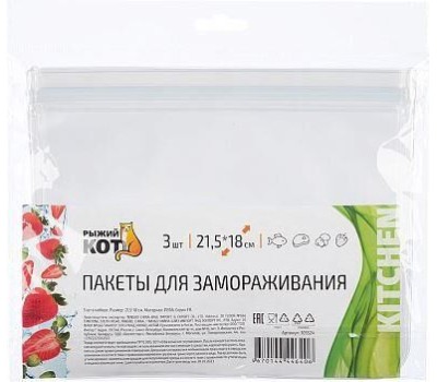 РЫЖИЙ КОТ Пакеты для замораживания, 21,5*18 см, 3 шт (105524)