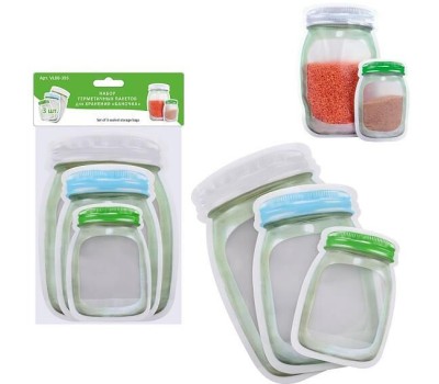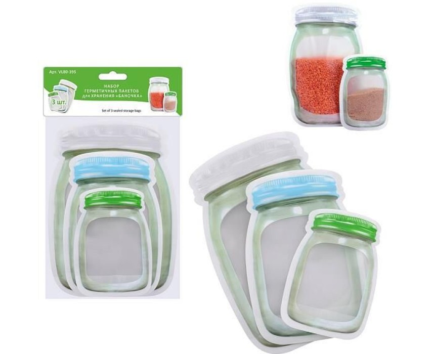 MULTIDOM Набор герметичных пакетов для хранения "Баночка".3 шт. 10,2х15см, 13,3х20см, 16,7х24,8см. 3 шт. VL80-395