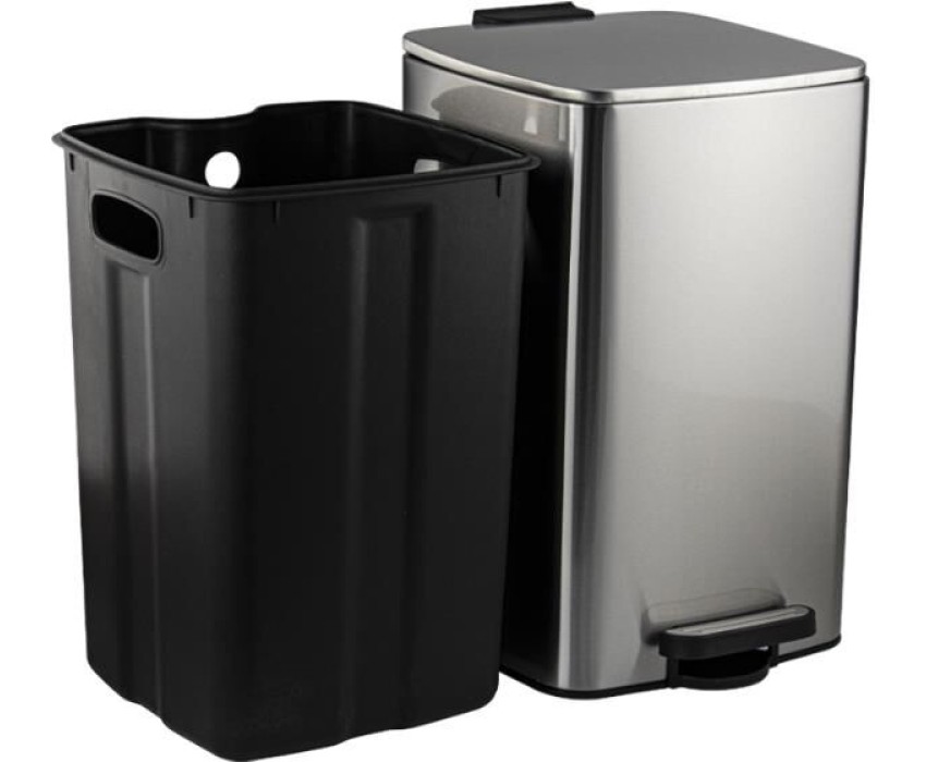 САНАКС - Ведро из нержавеющей стали, с педалью, квадратное, 16 литров, крышка микролифт, цвет САТИН. 10816-S