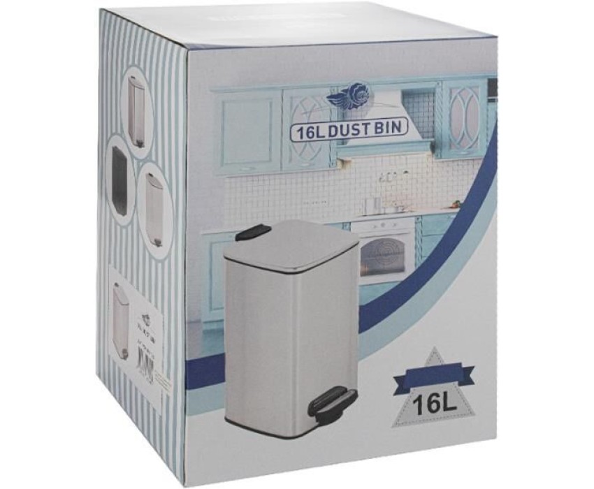САНАКС - Ведро из нержавеющей стали, с педалью, квадратное, 16 литров, крышка микролифт, цвет БЕЛЫЙ. 10816-V
