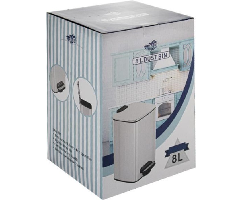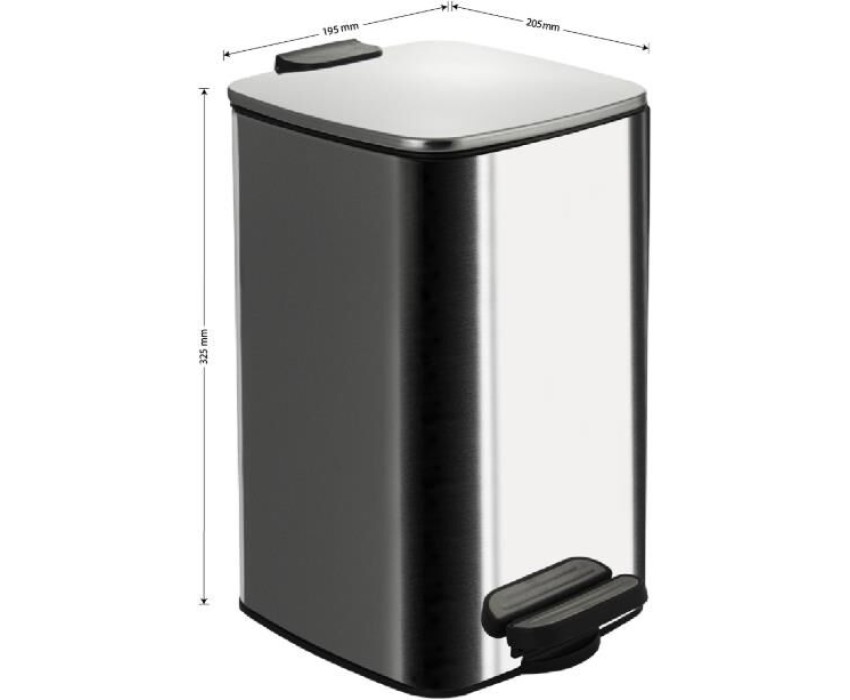 САНАКС - Ведро из нержавеющей стали, с педалью, квадратное, 8 литров, крышка микролифт, цвет ХРОМ. 10838